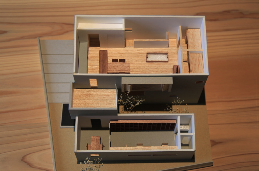 塗壁や造作家具と相俟ってどこに居ても職人の手仕事の跡が感じる事ができて、心地良さを得られる住宅、室内側より浮かび上がる建築を小さいながらも目指しました。